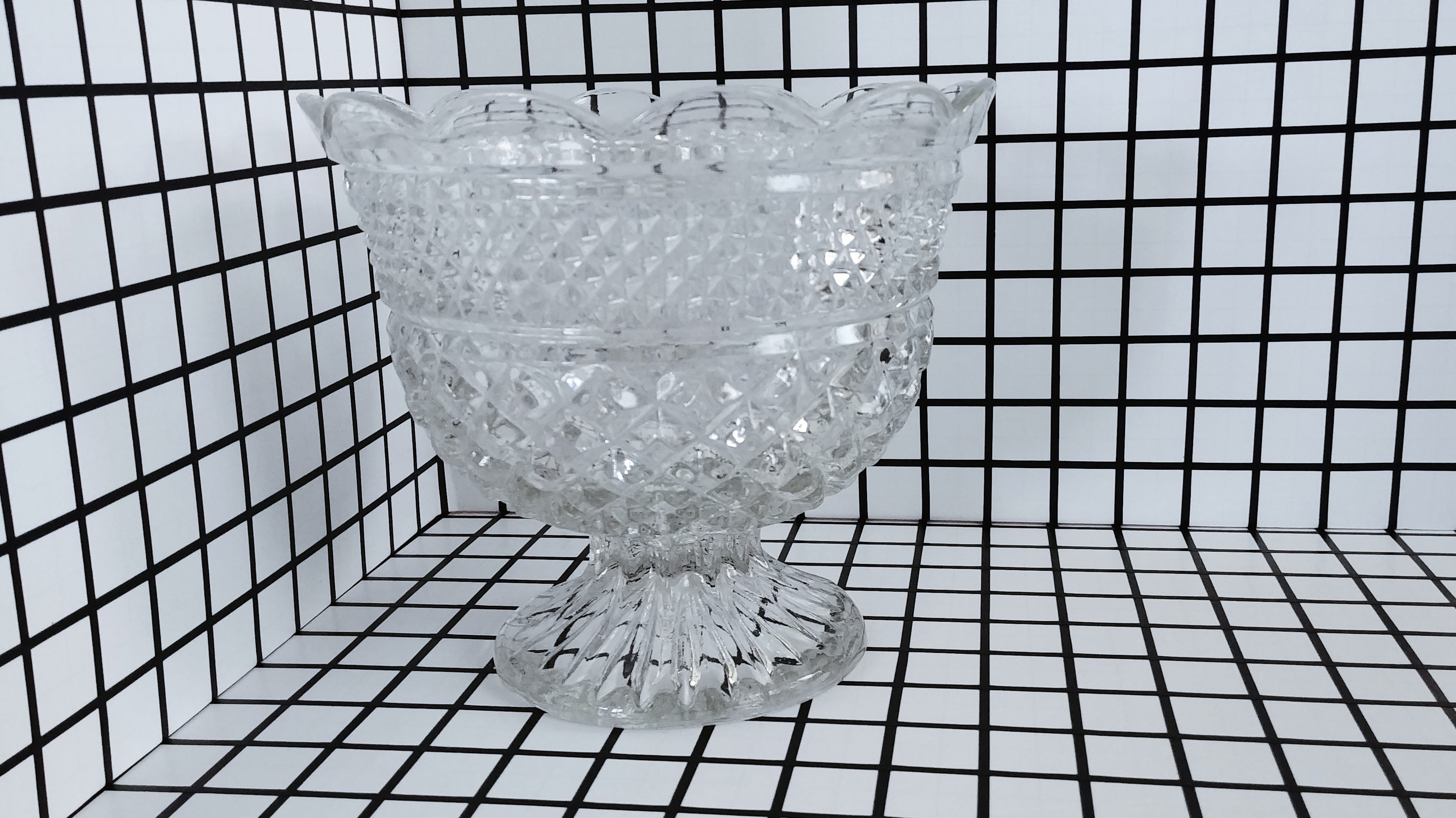 What I would call a compote, the Wexford catalog lists as “Bowl, 8″, ftd. centerpiece” and at one point listed for $14.00.