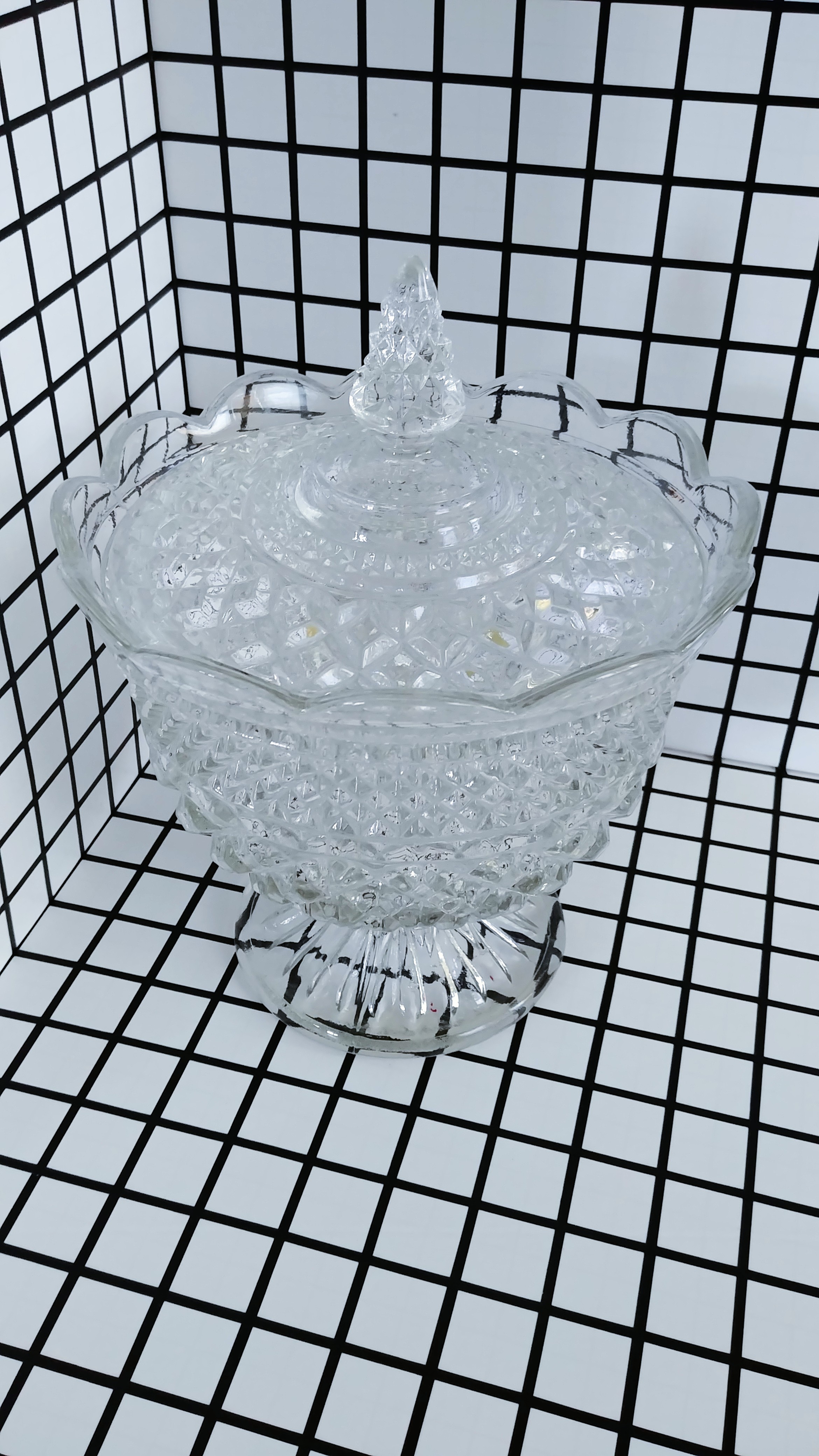 This is among my favorite pieces for the volume it holds and the height it adds to a buffet setting. I have been collecting Wexford by Anchor Hocking for over a decade, and it started as collecting random thrift store serving platters. Once I noticed the common pattern among the Wexford I had and saw how broad and available, and affordable, the pattern was in thrift stores, I was hooked.