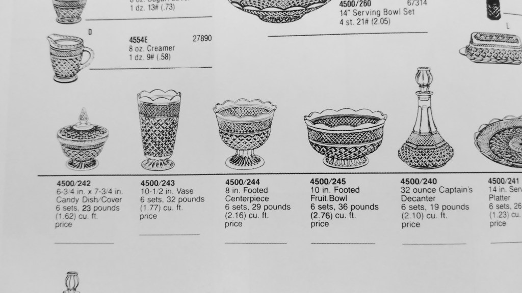 The most obvious companion piece to the footed centerpiece would be the footed fruit bowl. Also listed in the original Wexford catalog at $14.00.