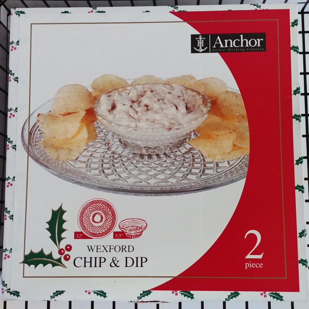 Although I have aquired two chip & dip sets (and a dozen or so individual “dip” bowls) via piece-by-piece discovery, I recently found a boxed set from a local thrift store.