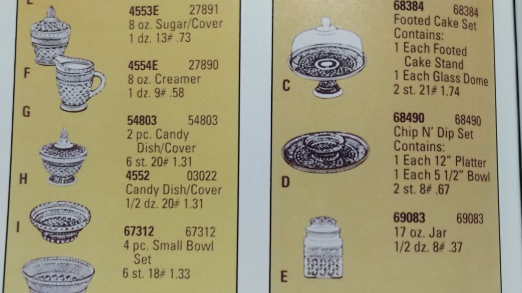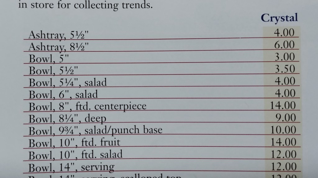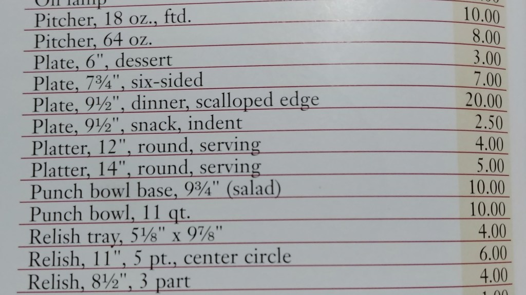 The set includes the 12″ serving platter and the 5.5″ bowl, listed individually at $4.00 and $3.50 respectively. I do not have a list price for the set.