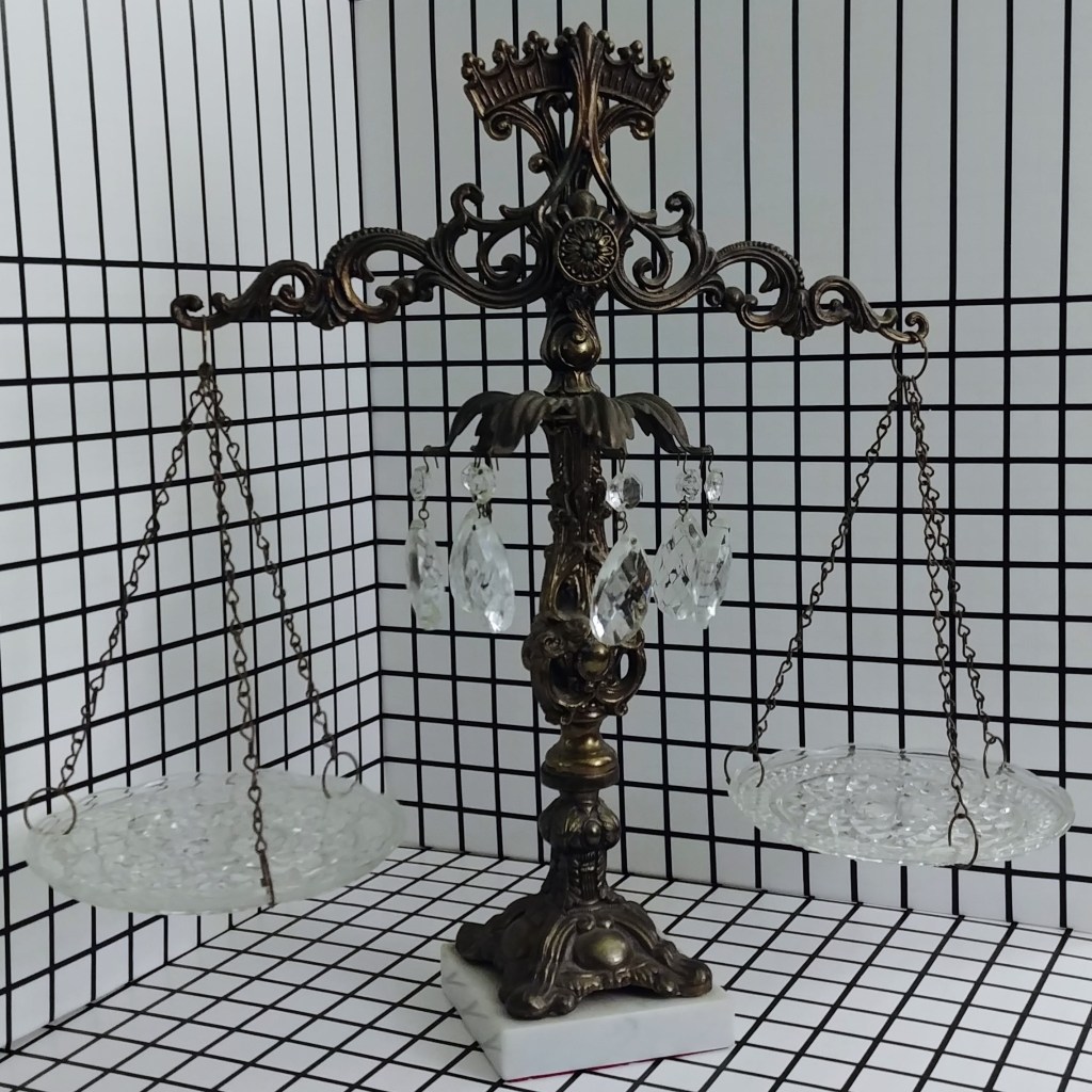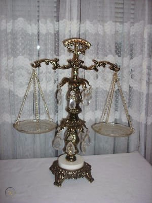Other scales found have different designs, different parts (although the seven-pointed bobeche is common to all versions pictured here). It is a deliciously ridiculous thing, from a time when everything could match. And often did.