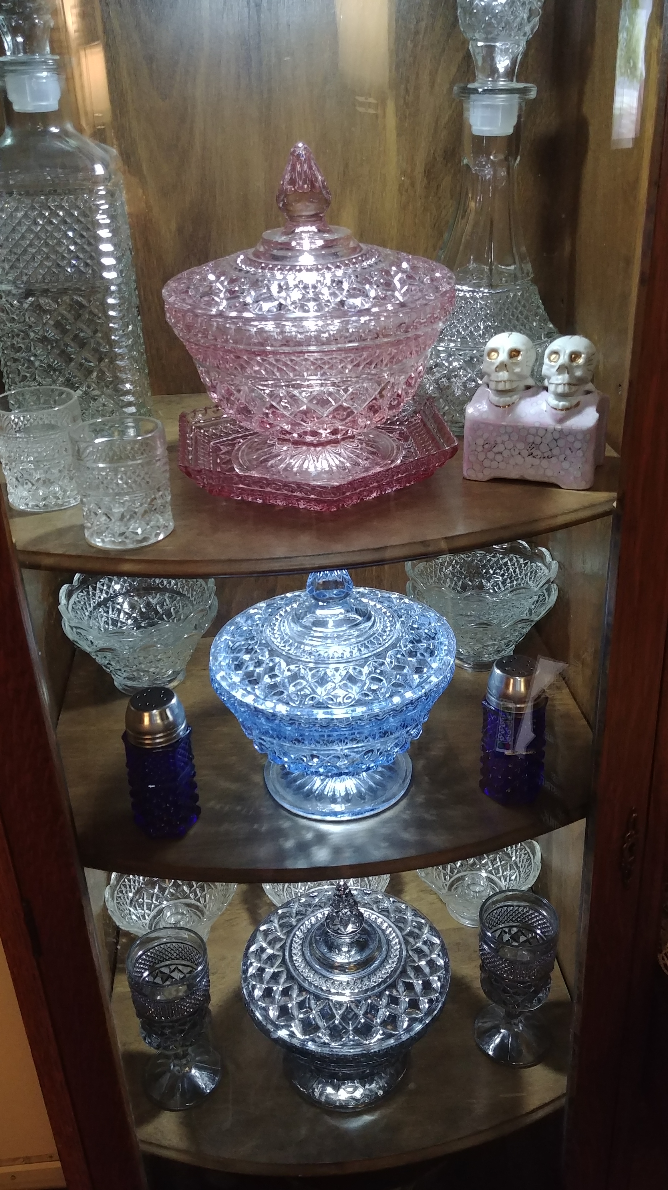 First, the Wexford candy dish was produced in the standard clear “crystal” and three other flashed colors: