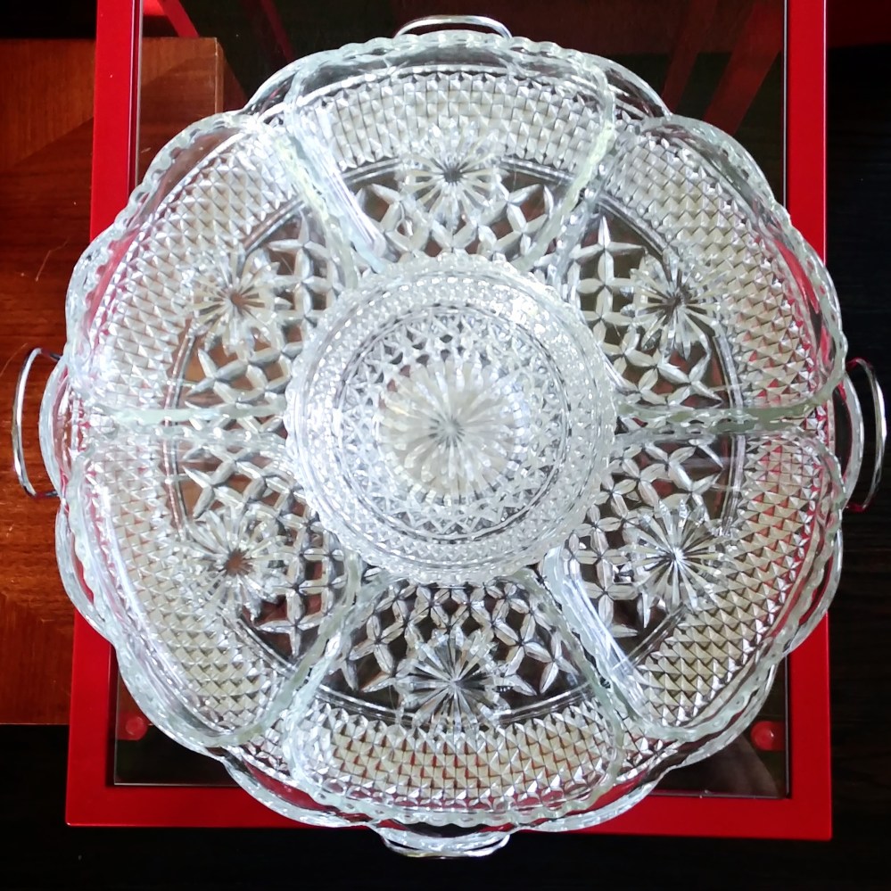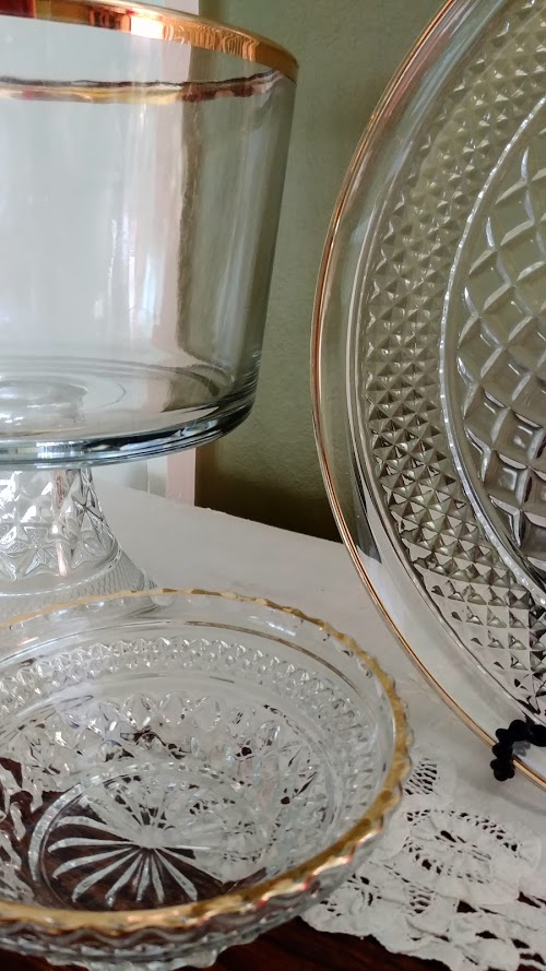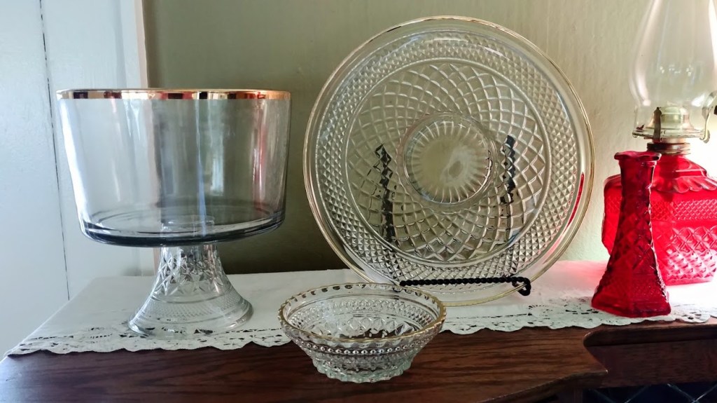None of these parts were found with Wexford glassware, but a few used Early American Prescut (EAPC) also by Anchor Hocking. The goal is to create my own custom “cobble”ware (my own word for frankensteining Wexford into functioning trophy-esque loving cups. This year led to gathering enough parts (including missing crystals) to move forward with the project phase.