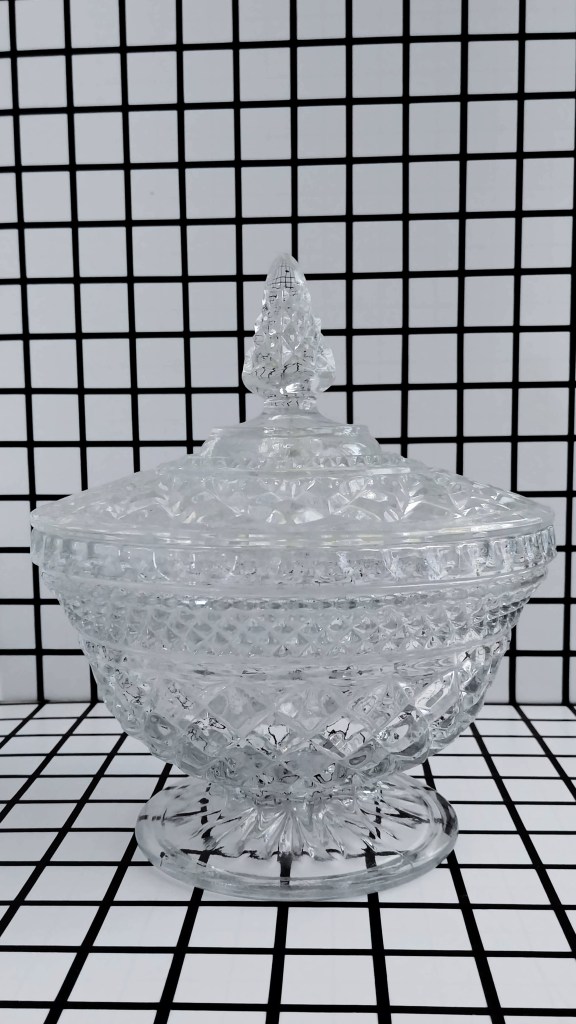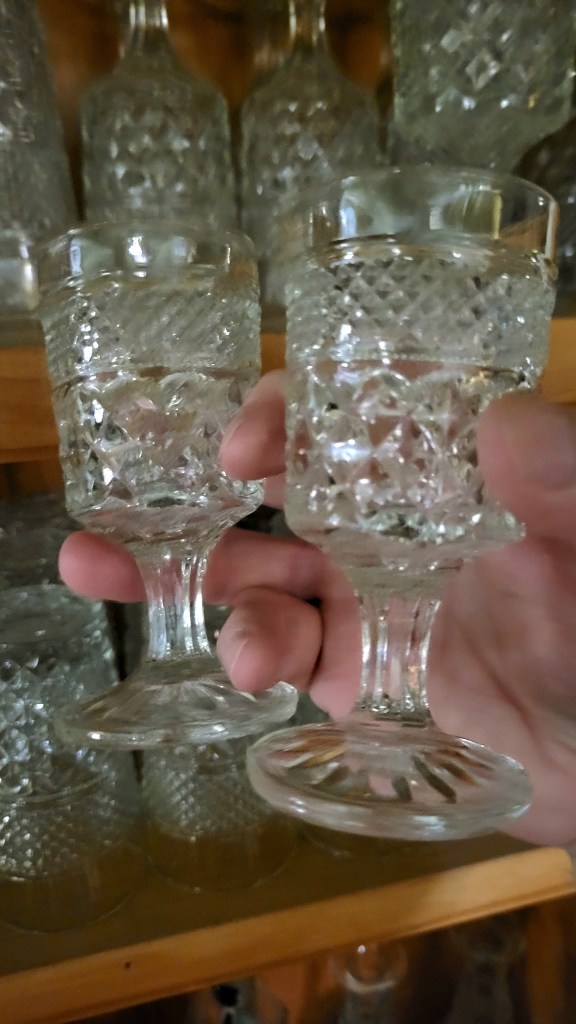 I had enough Wexford candy dishes to use as centerpieces for the thirteen reception tables. When she replied with, “I really like the Wexford.” I opened up the flood gates: