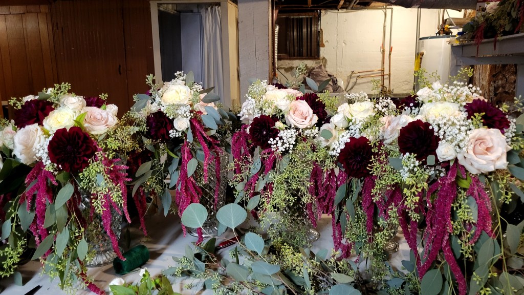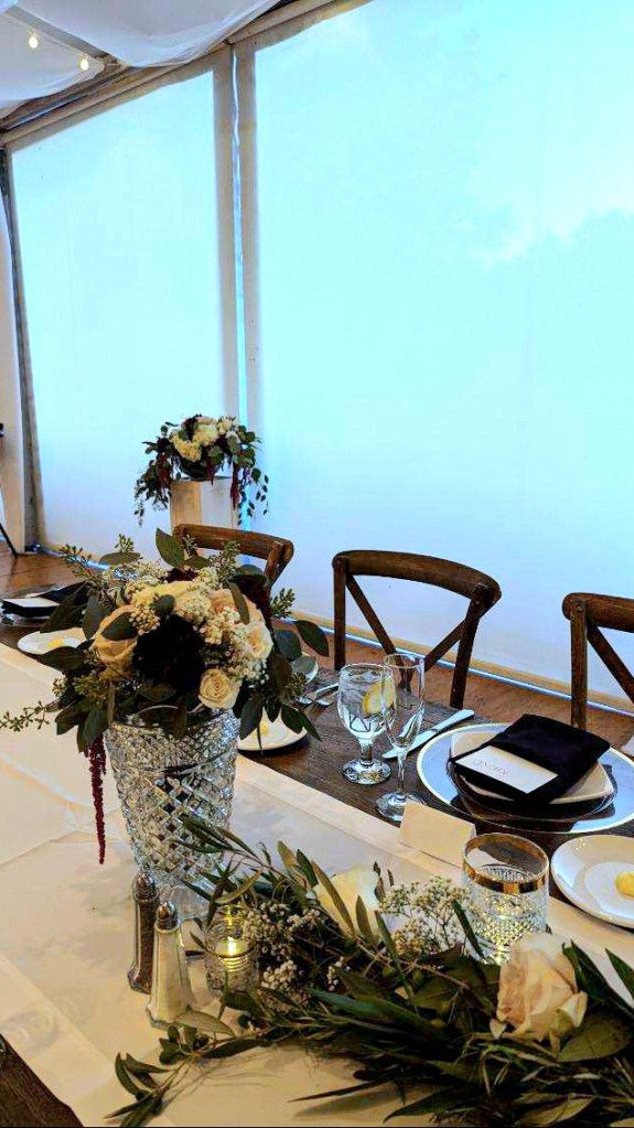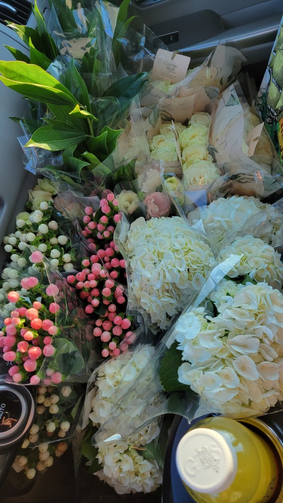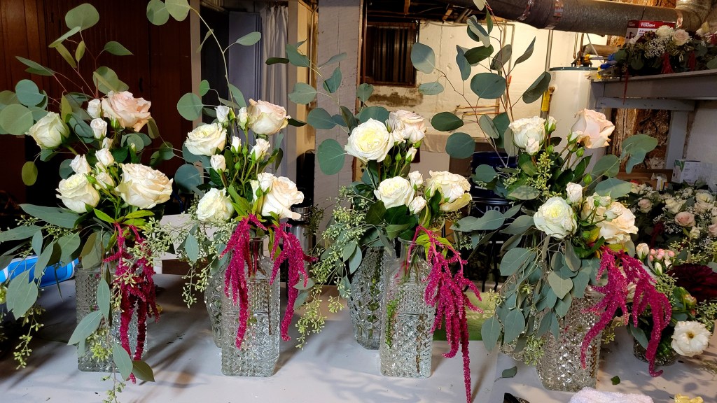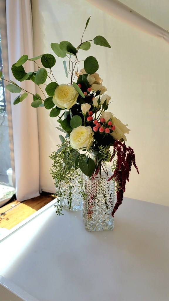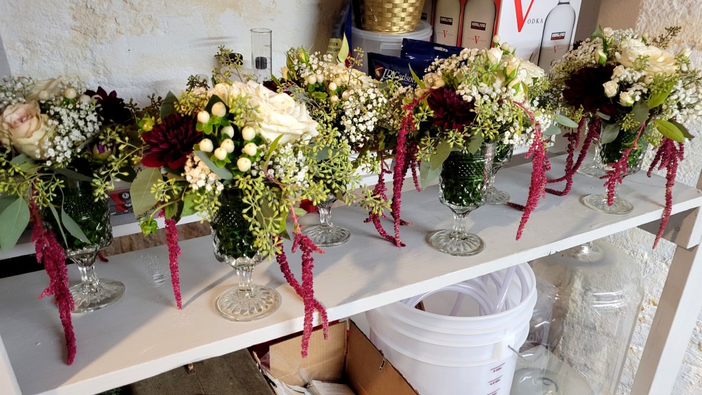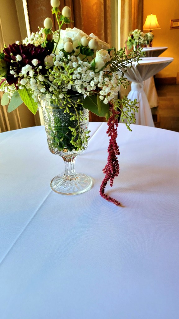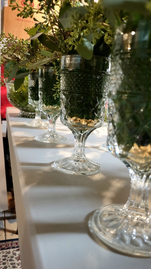 Last week, I had an opportunity to combine my obsession with Anchor Hocking’s Wexford glassware and my experience as an event florist on the occasion of my younger niece’s wedding.