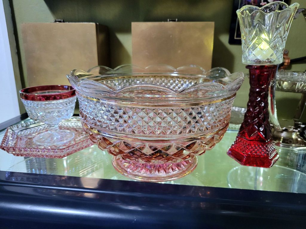 I have only recently been aware of the variety of Wexford’s ombre flash colors. I also learned it was applied to the large footed fruit bowl.