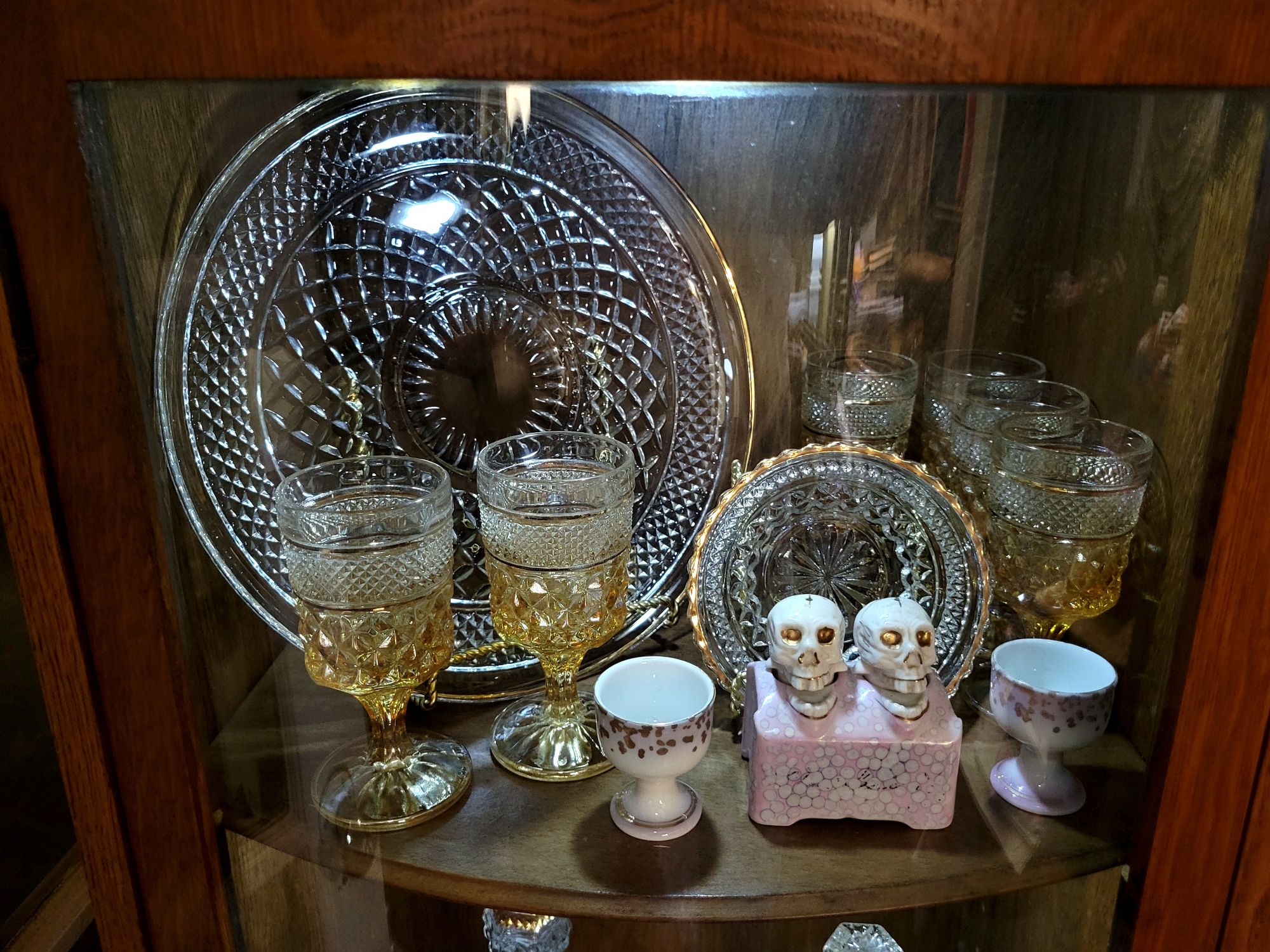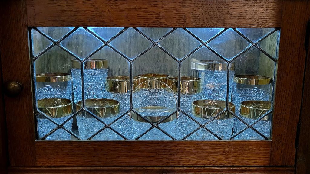 Let’s start with our Larkin Co. side-by-side, an early 1900s desk/hutch combination. It is now home to our Golden Wexford.