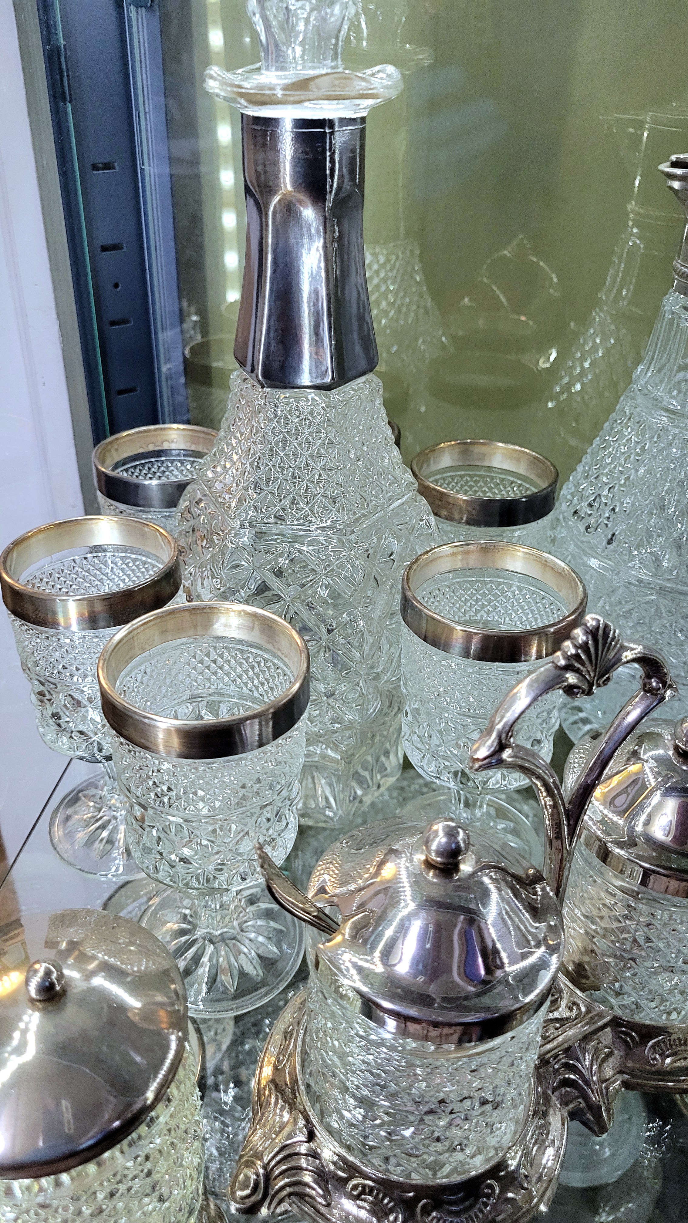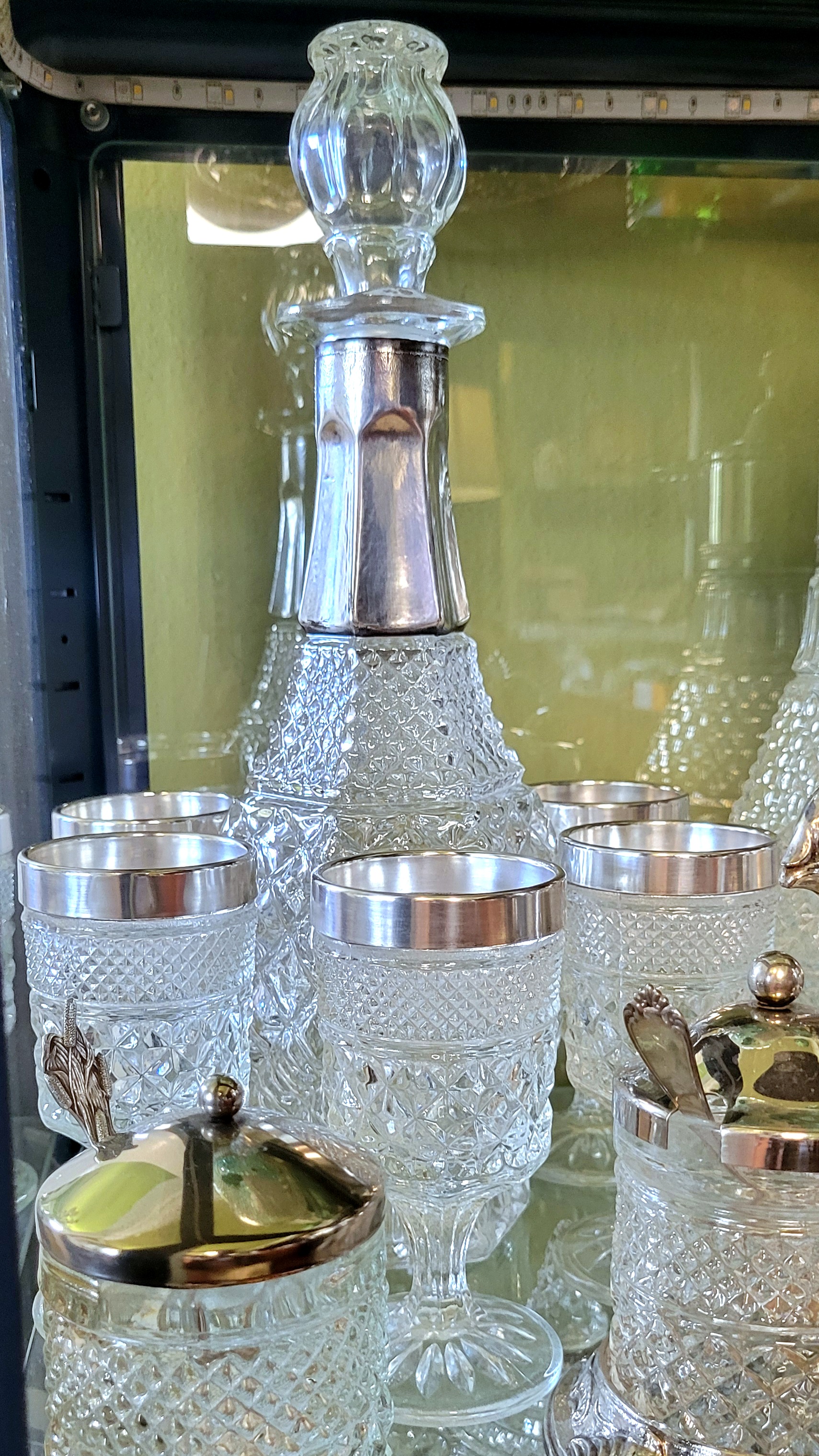 A breakthrough for my silver-trimmed Wexford: a few weeks ago, I discovered professional silversmith/polisher Harriete Estel Berman through a search for silver and silverplate care, namely, via the silver care tab of her site. A short email exchange about silver applied to glassware led to a suggested test that parallels the care instructions for holloware on the link above.